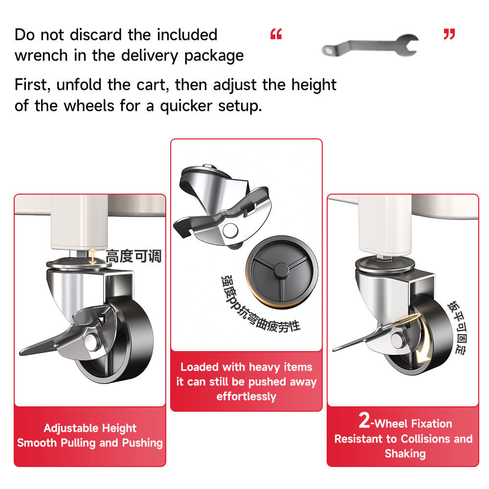 3 Tier Foldable Utility Organizer Multifunction Trolley Cart Rolling Storage Cart With Wheels